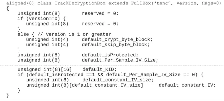 - tenc: Track Encryption Box 암호화에 대한 기본 파라미터 제공